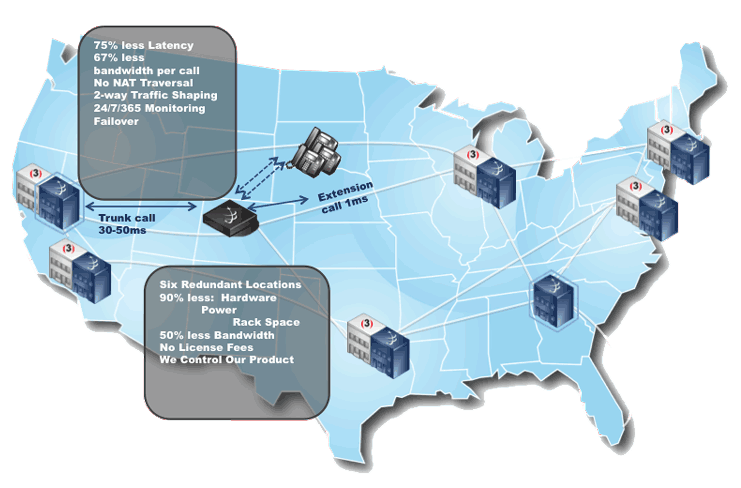 An exceptional phone system requires an exceptional network. The Star2Star Constellation Network co-locates Star2Star services with Level (3) PSTN gateways to provide excellent call quality by virtually eliminating latency and enabling the most efficient handling of the audio traffic. The Constellation Network also provides centralized management of network and voice services in our Atlanta and San Jose datacenters. Constellation allows Star2Star users to place call with extremely low latency times, which results in higher audio quality with virtually no delay.